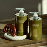 Renew & Replenish Clarifying Shampoo: WATER (AQUA), ORGANIC ALOE BARBADENSIS LEAF JUICE, SODIUM LAUROYL METHYL ISETHIONATE, SODIUM C14-16 OLEFIN SULFONATE, DISODIUM COCOYL GLUTAMATE, ACRYLATES COPOLYMER, GLYCERIN, COCAMIDOPROPYL BETAINE, LACTOBACILLUS/PORTULACA OLERACEA FERMENT EXTRACT, BIOTIN, PANTHENOL (VITAMIN B-5), ACETYL TETRAPEPTIDE-3, ROSMARINUS OFFICINALIS (ROSEMARY) LEAF EXTRACT, EUCALYPTUS GLOBULUS LEAF EXTRACT, NIACINAMIDE, FRAGRANCE, SODIUM PCA, SORBITOL, PROLINE, MAGNESIUM ASPARTATE, ARGININE, PCA, GLYCINE, ALANINE, SERINE, VALINE, PROLINE, THREONINE, ISOLEUCINE, HISTIDINE, PHENYLALANINE, COPPER GLUCONATE, CAMELLIA SINENSIS LEAF (GREEN TEA) EXTRACT, URTICA DIOICA (NETTLE) EXTRACT, ZINGIBER OFFICINALE (GINGER) ROOT EXTRACT, PERSEA GRATISSIMA (AVOCADO) OIL, OLEA EUROPAEA (OLIVE) FRUIT OIL, CITRUS AURANTIUM BERGAMIA (BERGAMOT) FRUIT OIL, GLYCOL STEARATE, GLUCONOLACTONE, SODIUM BENZOATE, DIMETHICONE, SODIUM LACTATE, DIMETHICONOL, MENTHYL LACTATE, GUAR HYDROXYPROPYLTRIMONIUM CHLORIDE, DISODIUM EDTA, PHENOXYETHANOL, SODIUM HYDROXIDE, CITRIC ACID.
