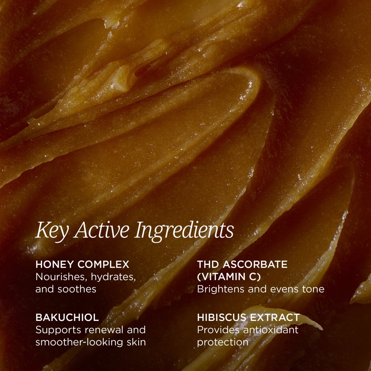 Honey Nectar Radiance Mask cocoons skin in a decadent, honey-infused gel that delivers visible radiance, refined texture, and deep nourishment. This glow-boosting treatment blends antioxidant-rich Honey Complex with brightening Vitamin C and skin-renewing Bakuchiol to help revive dullness, smooth uneven texture, and restore a luminous, healthy-looking complexion.