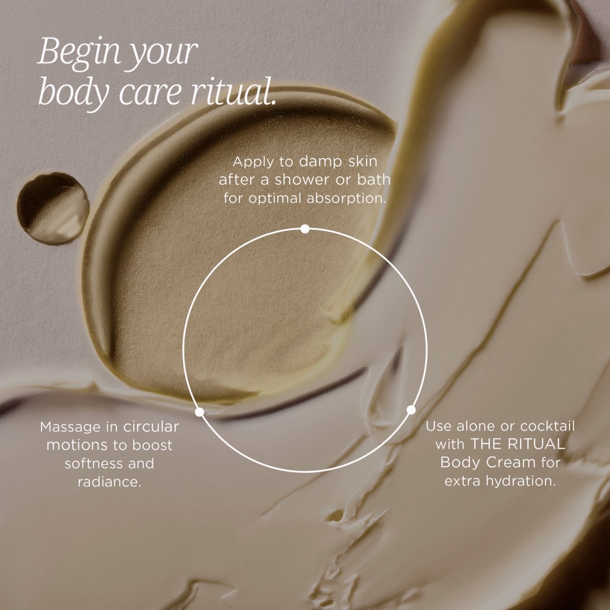 THE RITUAL BODY OIL is more than a glow enhancer - it’s daily care for the skin below your chin. Just like your face, your body is prone to dehydration, fine lines, uneven tone, and rough texture, and deserves the same level of care.